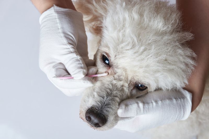 濡らしたコットンやティッシュを使い、やさしく目の周りを拭き取ってあげましょう。顔の周りの毛が長い犬種は、目の周りの毛をカットし目に入り込まないようにしてあげましょう。